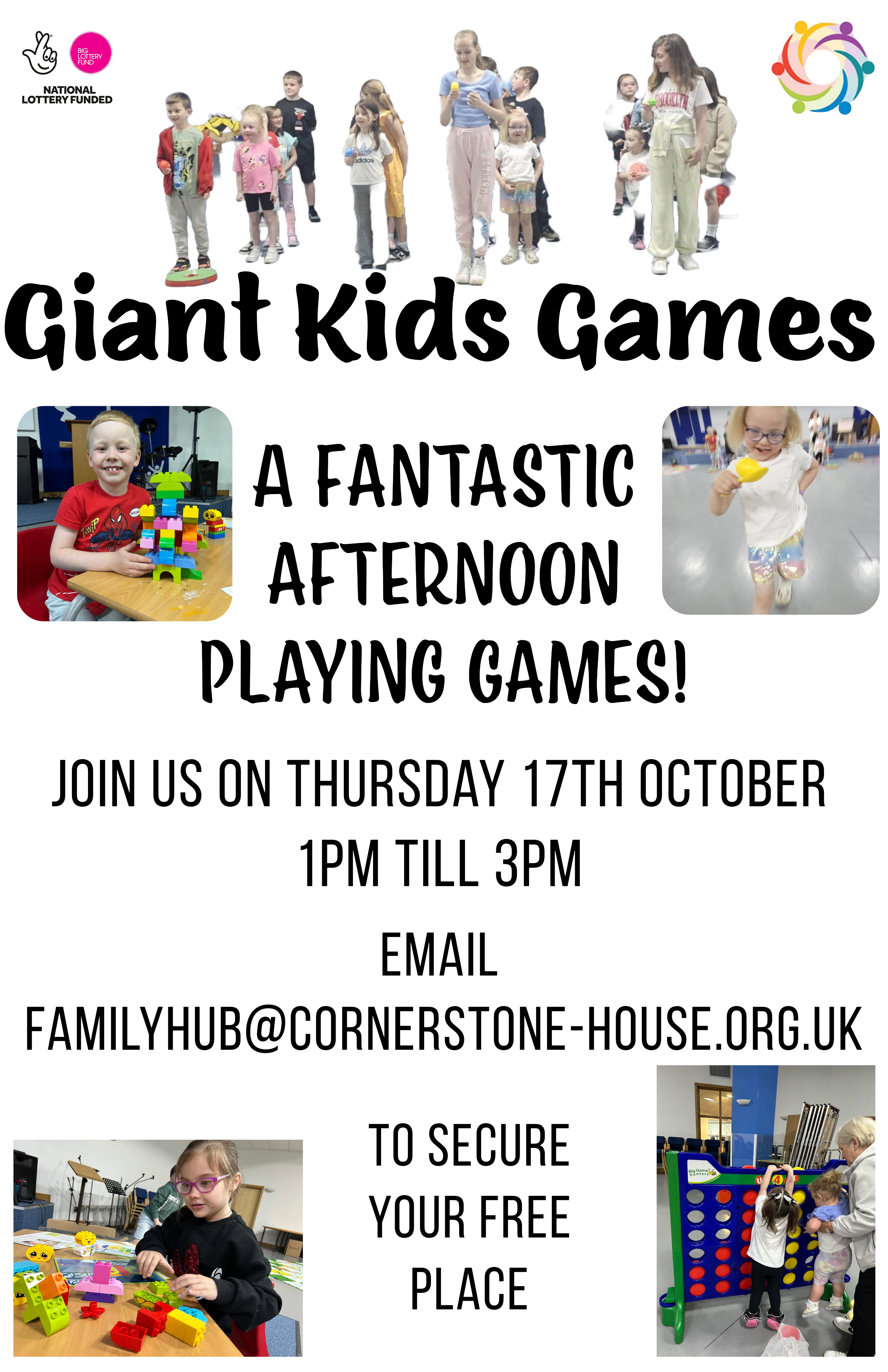 Click Here to View Cornerstone House Centre’s Giant Kids Games Session Promotional Poster